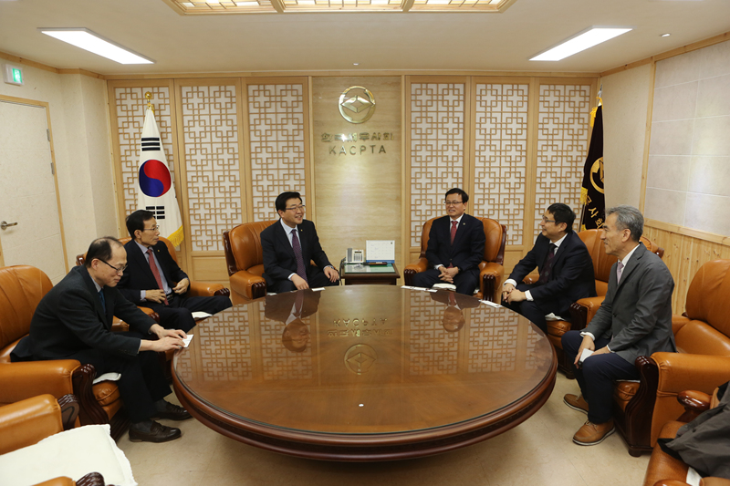 | On December 11, President Won Kyeong Hei had a meeting with the President of the Korean Patent Attorneys Association (President Oh Se Joonh) who visited the KACPTA hall in Seocho-dong. On this day, President Oh Se Joong announced his intention to maintain a smooth and cooperative relationship with the KACPTA. President Won Kyeong Hei expressed his appreciation and also intention to cooperate through active exchanges in the future. |