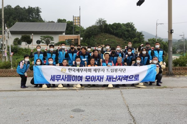 On August 22, the KACPTA's Certified Public Tax Accountant Dream Volunteer Group visited the flood recovery site in Myeongpum-ri, Sanbuk-myeon, Yeoju-si, an area affected by torrential rains, and conducted volunteer work.