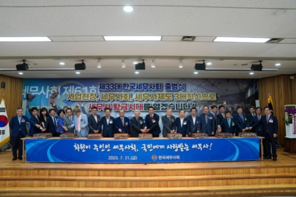 On the 21st, the 33rd Korea Taxation Society launch ceremony was held on the 6th floor of the KACTA Hall, and executives, directors, and the chairman of each committee were appointed. In his inaugural address, President Koo Jae-yi said that 26 competent and dedicated members of the board, 39 directors representing members of the country, and 33 chairmen with the highest professional expertise in the field of business will work together for the members. The 33rd Executive Board will decide to set up ▲New Employee Training School ▲Young CTA School ▲Member Support Center ▲Taxpayer tax support center for field support and business for members.