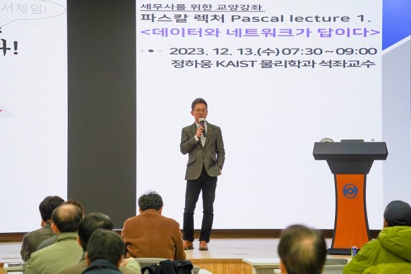 The ‘Pascal Lecture’, a humanities course planned by the KACPTA (President Koo Jae-Yi), captured the hearts of members from the start. In the first ‘Pascal Lecture’ held on the 13th, Professor Hawoong Jeong of the Department of Physics at KAIST gave a passionate lecture under the theme of ‘Data and networks are the answer.’ The lecture lasted about an hour and a half from 7:30 to 9:00 am, and although it was a bit early, about 50 members gathered in the auditorium on the 6th floor of the KACPTA Hall to listen to the lecture. On this day, Professor Jeong Ha-woong started with the definition of complex systems, the numerous components that we commonly see around us, the network structure that is connected through complex interactions, and data science that helps us reinterpret the vast amount of information in big data. I explained it with a realistic example.