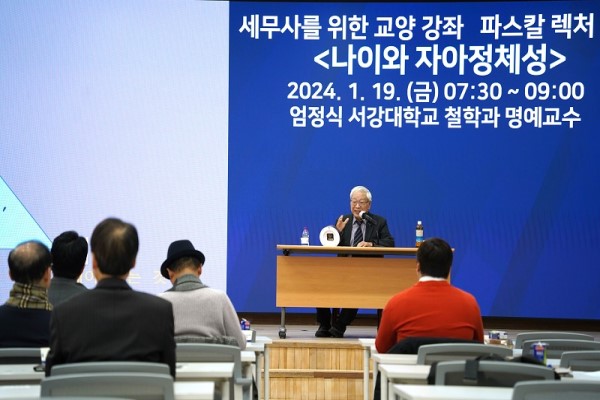 The second session of the Pascal Lecture, a humanities lecture organized by the KACPTA (President Koo Jae Yi), gave a lecture on ‘Age and Self-Identity’ by Professor Emeritus Jeongsik Eom of the Department of Philosophy at Sogang University, which deeply moved members. About 50 members who attended the lecture that day gathered at a rather early hour, 7:30 a.m., and listened to Professor Eom Jeong-sik's lecture on ‘How I live as myself.’ The ‘Pascal Lecture’ lecture, a humanities lecture designed to help tax accountant members become consilient talents, is offered once a month, and the next lecture is scheduled for February 19th. Additionally, for further information on member and office staff training, please contact the KACPTA Training and Publishing Team (02-597-2941).