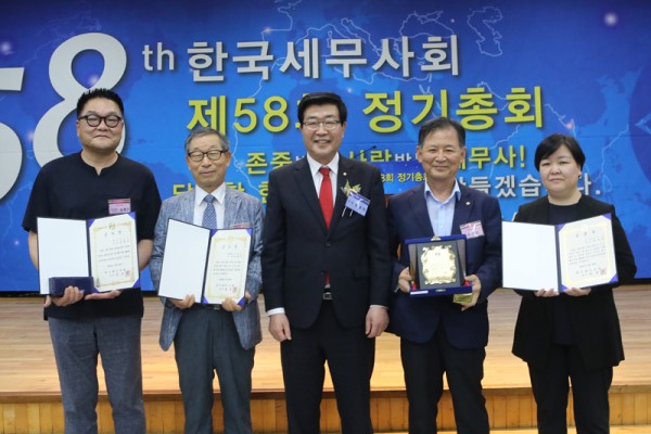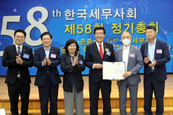 The KACPTA held its 58th regular general meeting on June 30 at the auditorium on the sixth floor of the KACPTA buliding in Seocho-dong, attended by around 150 members. The KACPTA has recently reduced the size of the event due to COVID-19 pandemic also in consideration of the safety of its members in the local community. In the government's rewards, President Won Kyeong Hei passed down the Deputy Prime Minister and Minister of Strategy and Finance (23), the Minister of Public Administration and Security (24), the Minister of Employment and Labor (2), the Minister of Small and Medium Venture Business (10), the Director of the National Tax Service (30), and the Minister of Government Legislation (7). In addition, the KACPTA President's Commendation was awarded to members who contributed to the development of the KACPTA and the CPTA system. Central and Daegu local tax societies were selected as excellent local tax societies, and a total of 15 local tax societies, including Seongbuk regional tax societies, received commendations. Three appreciation plaques (3 people), achievement awards (115 people), and turtle awards (207 people) were awarded, and commendations were given to employees of the Secretariat and member officers.