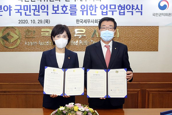 The KACPTA and ACRC(Anti-Corruption & Civil Rights Commission) entered into MOU on 29 of October at the KACPTA to establish a system of cooperation related to the protection of national rights in the tax sector. At the MOU ceremony, President Won Kyong Hei and Jeon Hyun-Heui, chairman of the Anti-Corruption and Civil Rights Commission, agreed to actively cooperate in supporting tax consultation activities and creating mutual cooperation between the two organizations.